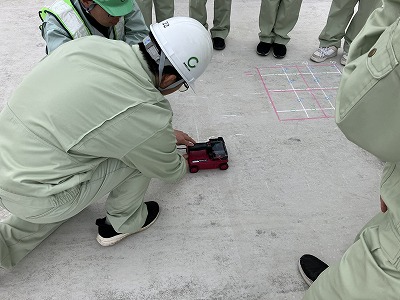 見学では,工法の紹介を含む事業概要のご説明,床版にあがっての計測体験(トータルステーション,鉄筋探査機)を準備いただきました.