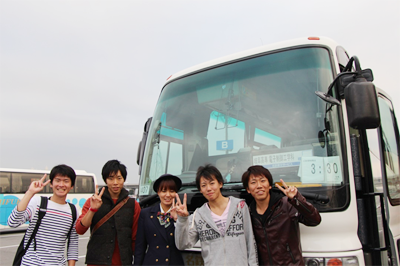 バスガイドさんと仲良く写真を撮ったり,研修先(企業)では積極的に質問しエンジニアとしてのリテラシーを学びます