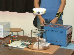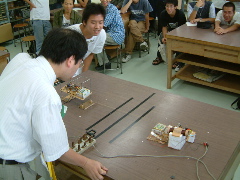 - 超音波リニアモータカー(圧電素子に高周波電圧を加え振動させ、それを駆動力として直進する車)を作製し、性能を競う。