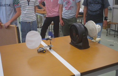 - 風を受けて発電した電力により、風上に向かって走る作品のコンテスト。