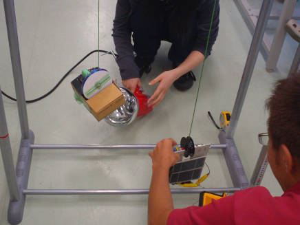 - ロボットがロープを登り、ゴールまでの到達時間の早さを競う。