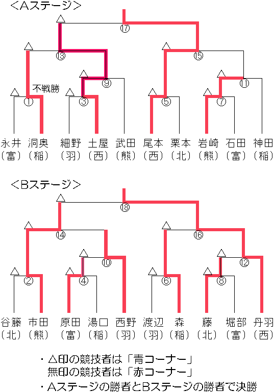 役割分担 進行:稲葉 審判:熊崎 冨田 記録:羽渕 トーナメント表:西田 採点者:武冨 所 福岡
