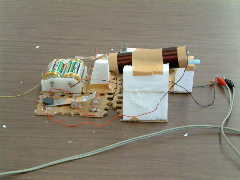 冨田研 モーターの鉄芯は、空き缶を100枚重ねて作ったものだそうだ。 |