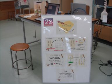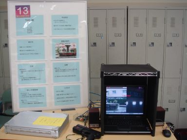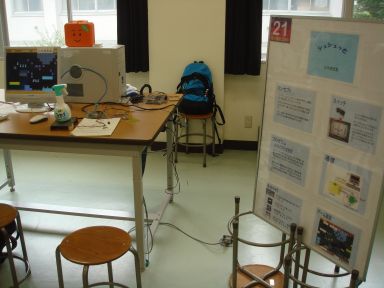 ここでは学生が作った作品を紹介します。作品は9/2に開催された中学生一日見学会にすべて公開しています。また、第4学年の工学基礎研究の作品も公開しています。説明の(4E)は工学基礎研究、(5E)は電気電子工学実験、情報工学実験を意味します。見学会では、スタンプラリーによって作品を見ていただき、優れた作品を3つ選んでいただきました。その結果を公表します。