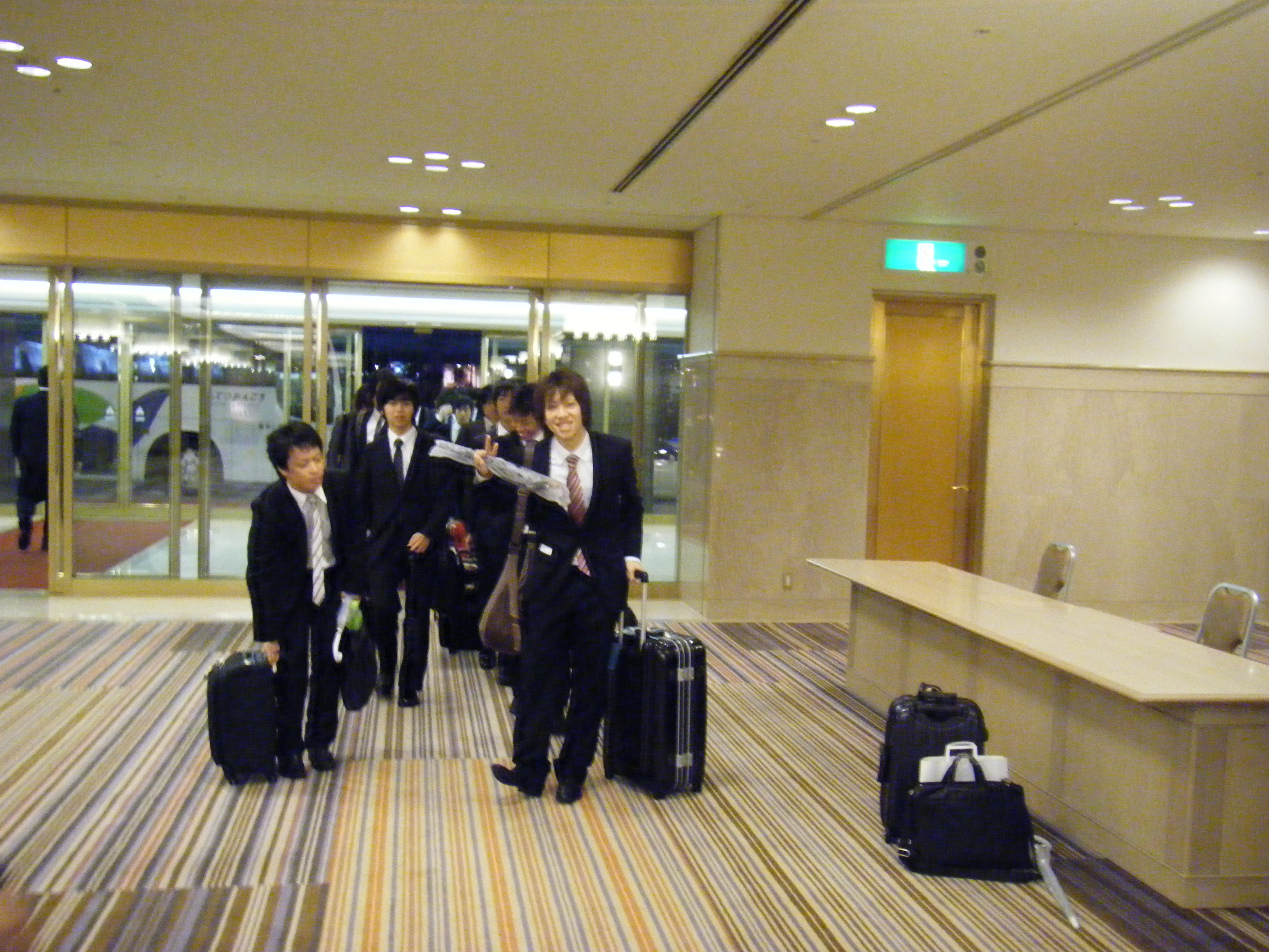 食べすぎで動けない。昔は別府の危ない箇所の交差点に立ち、とおせんぼをしていたものですが、外は寒そうだし、フロントの椅子に座って新聞でも読むふりをしながら、外に出掛ける学生をチェックすることにしました。あまり外に出て行った学生は少ないようですが、組み合わせはなるほど、私の予想の範囲でした。有明高専も宿泊しているとのことでしたが、なんとなく高専生というのはわかります。おなかもようやく落ち着いたので部屋に帰り、温泉に行く準備を始めました。まずは貴重品を金庫に入れ鍵をかける。それから、背広を脱ぎ、おっと、携帯電話のチェックをせねば。アリ?!ない!大変だ!あれがないと非常に困る。!別府に来た時は確認したので、食事の時か、ホテルのフロントの椅子かだ。あわてて部屋をとびだし、まずはフロントへ。椅子のところへ行くと、ありました。背広の左下の内ポケットに入れているとときどき、座っているときに落ちるんです。やれやれ、これでゆっくり温泉に入れる。部屋に帰り、鍵でドアを開けようとして気がつきました。ドアを開けようと右手に持っていたのは金庫の鍵でした・・・。オートロックで部屋の鍵は部屋の中・・・。学生にはホテルで鍵を忘れるなんて恥ずかしいから注意するように言っていたのですが、こんなことは初めてです。あせっていたのか、ボケが始まったのか。そそくさとフロントに行き、学生がいないのを確かめて、鍵を開けてもらうように依頼しました。部屋の前で待っているように言われたので、待っていると、仲居さんが来て、「よくあるんですけど、先生が忘れるのは珍しいですね」「あわてて部屋を出た時、金庫の鍵を部屋の鍵と思い込んでいたんです。ボケが始まったんですかねえ。」「あら、まだ若いのに。ありゃ。7階のマスターキーをもってきました。ここはたしか8階でしたね。出直してきます。」・・・人のことは言えない・・・。