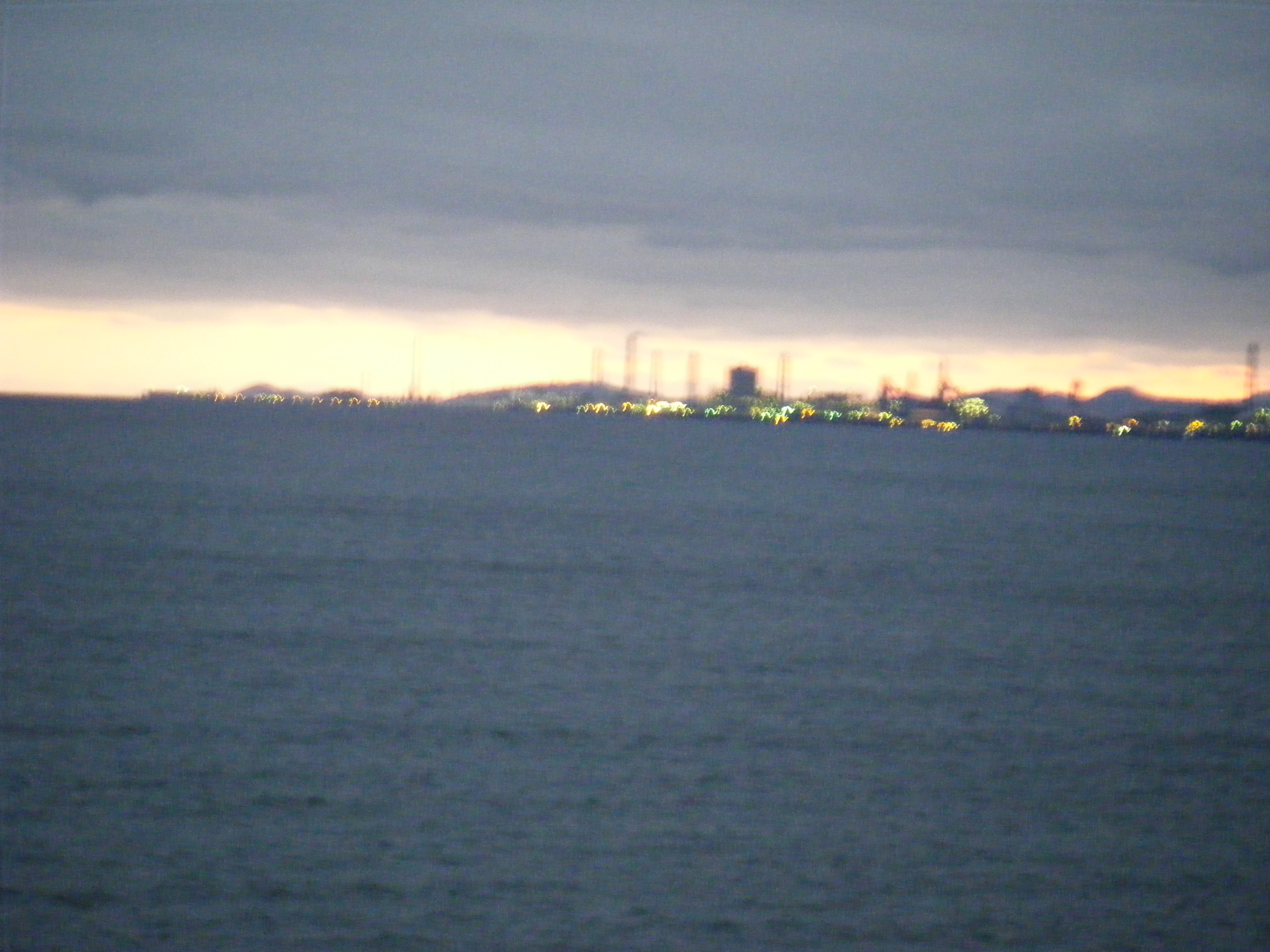 点呼は順調に終わったが、女子学生が一名熱がある。それほど高くはないのでインフルエンザではないと思うが、明日、朝もう一度はかり直す必要がある。明日は強行日程で8時出発。いつも、4時ころには目覚めるので、寝過ごす心配はなかろう。720mlのうちの残りを飲んで、二日で一本のいつものペースに戻った。電気を消してぐっすりと、と思ったら、ドスンドスンという音がする。どうやら上の階から響いてくるようだ。そのうちに、我々のいる階でもぼそぼそ話し声やときどき笑い声が聞こえる。まあ、学生たちもたまにはいいではないか、こちらはさっさと寝てしまえばよい。・・・寝付かれない・・・時計を見ると午前1時・・・、まだ大きな声がしている。さすがに他の階に迷惑がかかるだろう・・・。みんなが集まっている部屋があってそこでわいわいやっているようだ。「たいがいにせよ。明日は朝早いからもう解散せよ。」と言って部屋に戻る。・・・解散したのはいいが、今度は少人数で複数の部屋でトランプや話し声が聞こえる。まあいいか、学生たちは慣れているのだろう。こちらはさっさと寝てしまえばよい。・・・寝付かれない・・・時計を見ると午前1時30分・・・「おい、頼むから寝てくれないか、年寄りにはつらい・・・」の一言で静かになる。・・・朝、4時に目が覚める。窓からは漁船の篝火がみえる。朝早くから漁に向かうのであろう。国東半島であろうか、明かりが見える。幻想的な景色だ。写真を何枚かとり、日の出をカメラに収めようと待つ。結局、睡眠時間は2時間半だった・・・。