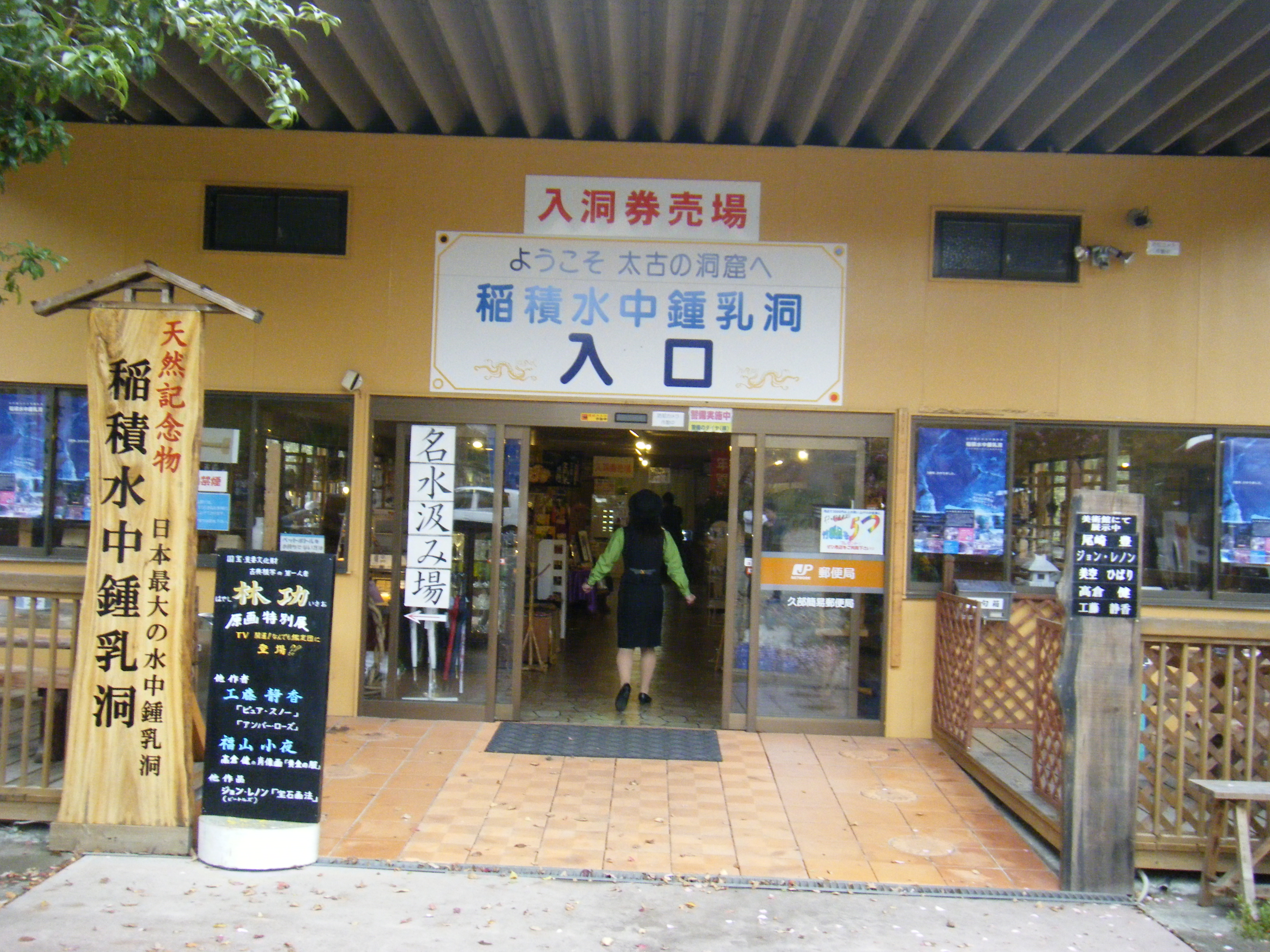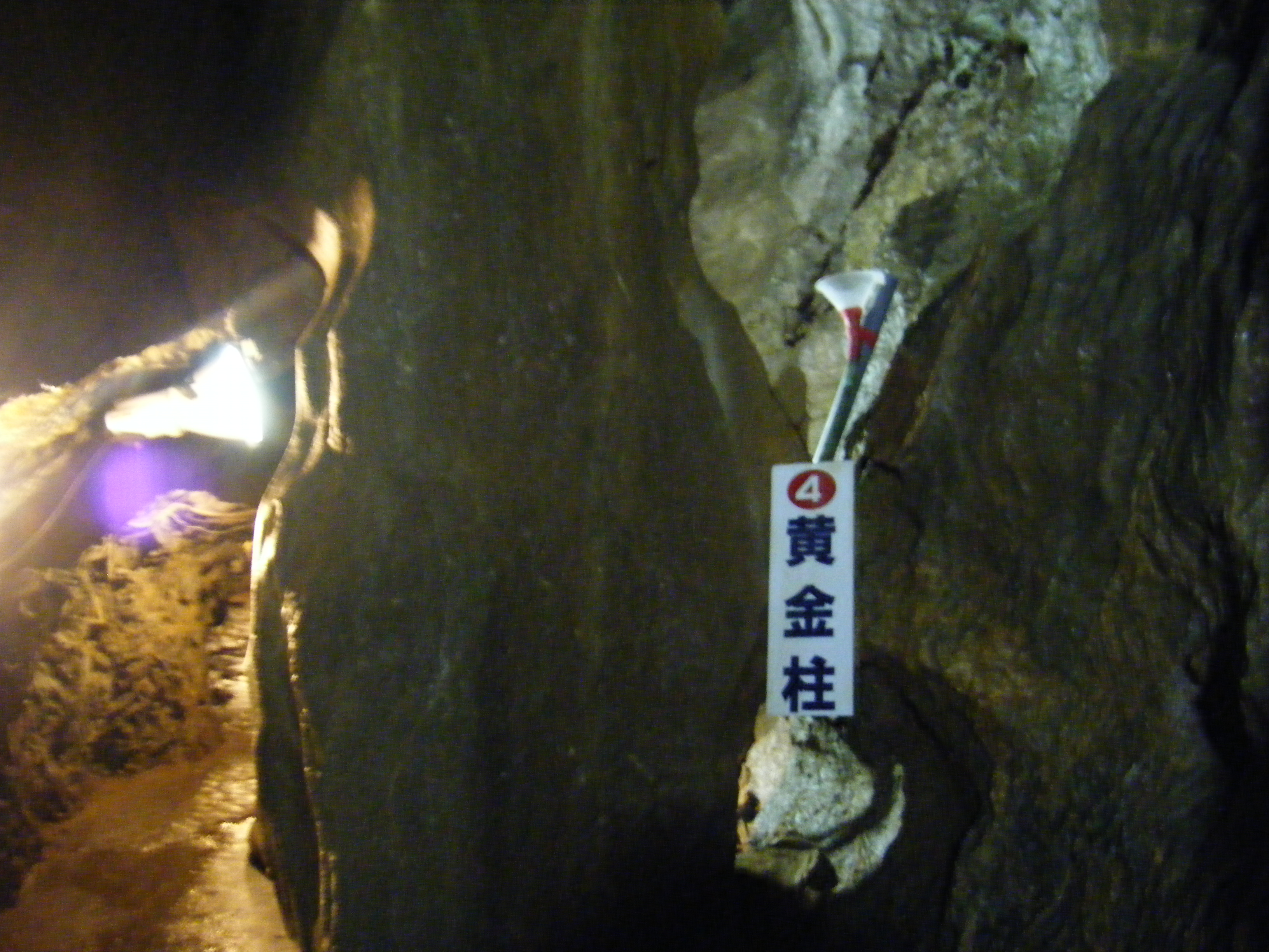 予定時刻に集合して次の稲積水中鍾乳洞へ。ここは数年前にできたところらしく、運転手さんも初めてのところだそうです。途中から、我々は大変なところに向かっていることがわかってきました。道は私がよく行く山登りの林道のようなものなのです。普通自動車同士のすれ違いもできないようなところがあり、たまたま、大型バスと対面にならなかった(もともと、大型バスはいかない?)からよかったものの・・・。断崖を工事しているところが何箇所かあり、肝を冷やしました。工事のおっちゃんたちもバスが来たのにはびっくりしていたようでした。