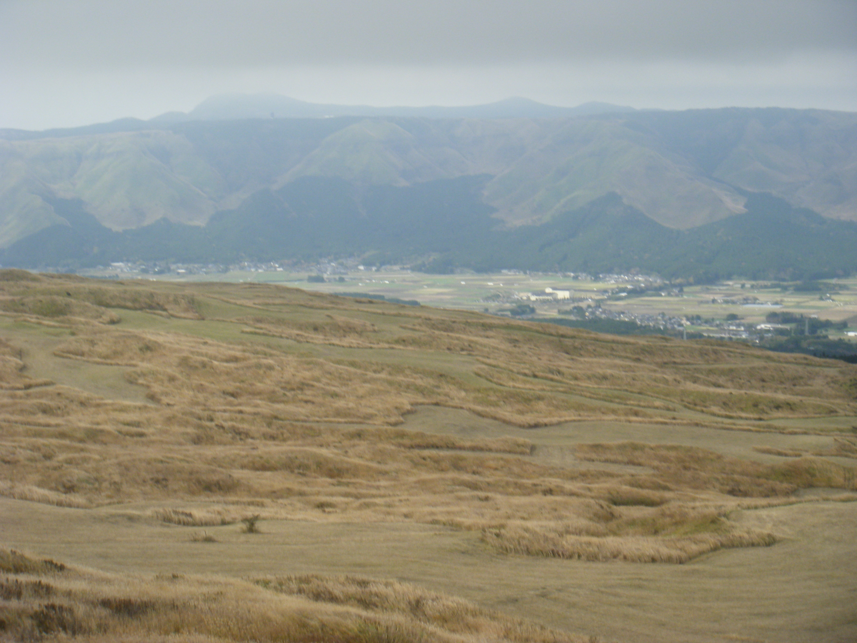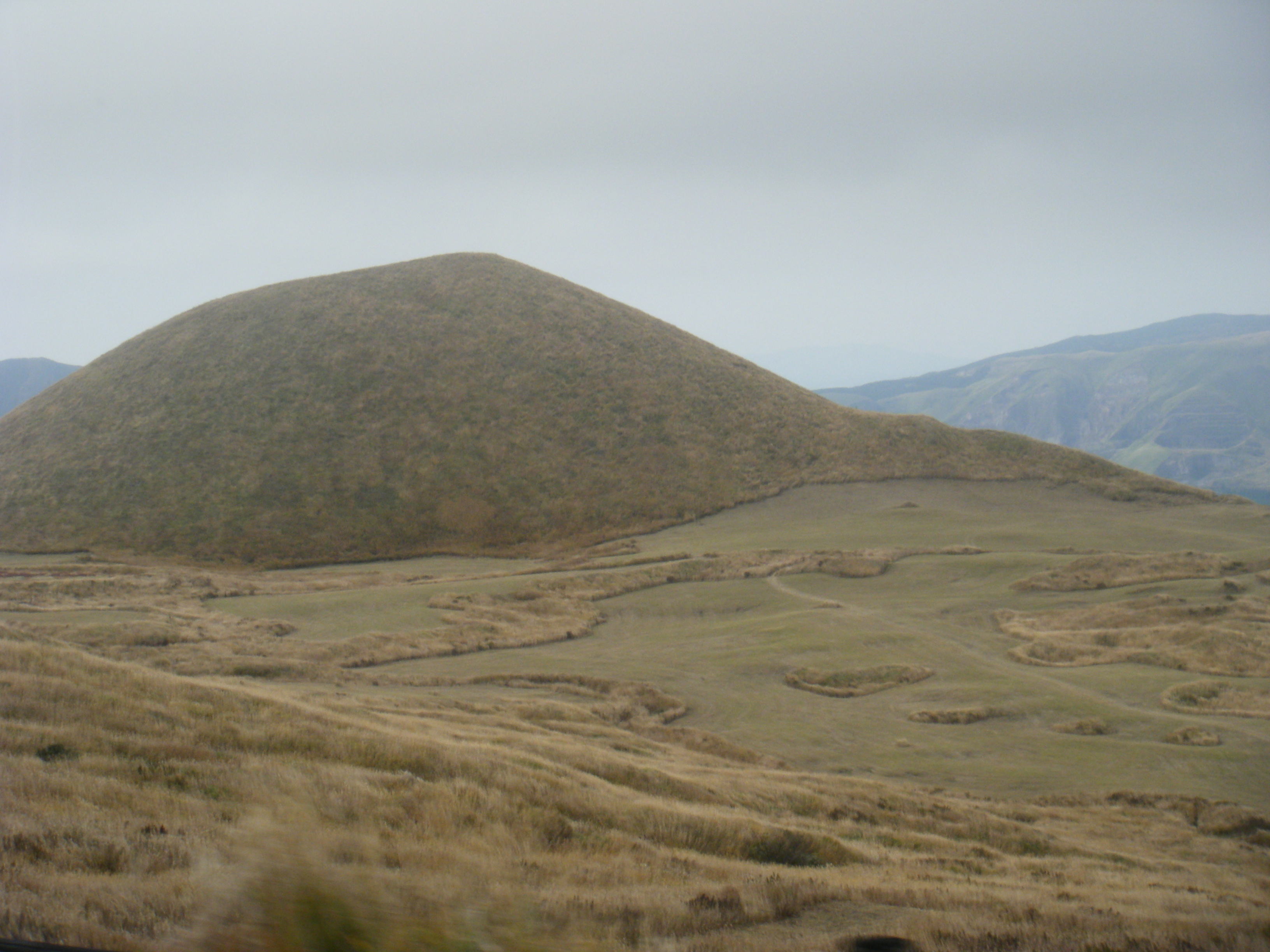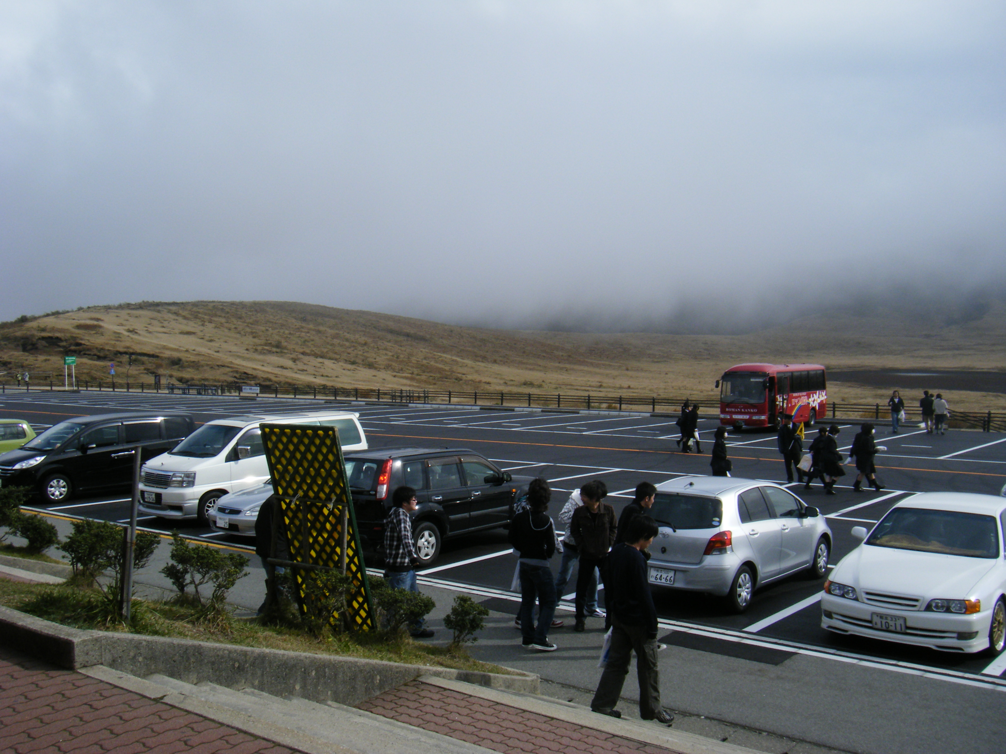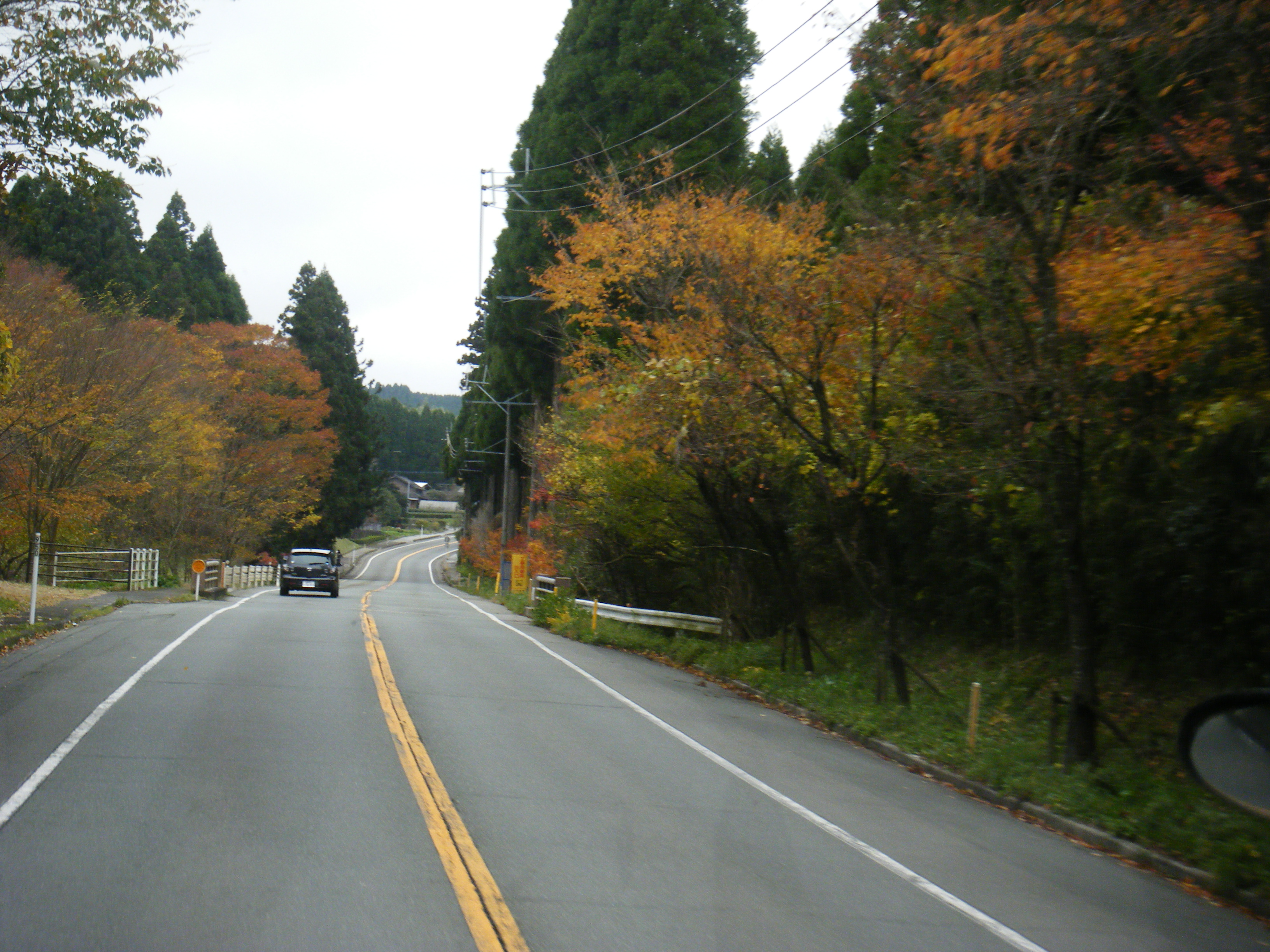 次は阿蘇山です。山登りを始めてから初めての阿蘇ですので期待していました。別府から阿蘇へ向かう場合は山波ハイウェイを通るのですが、今回は稲積経由ですので通りません。残念です。あの雄大さを学生にも見せたかった。それでも阿蘇に向かう途中の紅葉は素晴らしい。