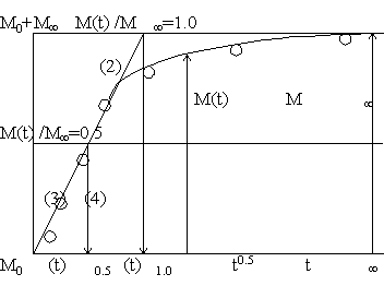 M(t)/M = 4{D/(pl2)}0.5t0.5. (2)