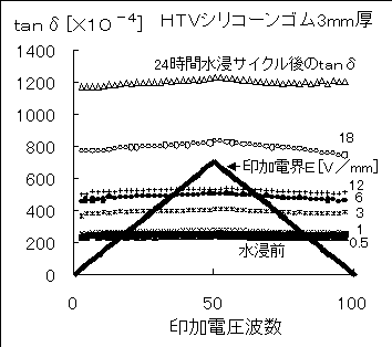 図1 水浸劣化による体積方向tanδの変化