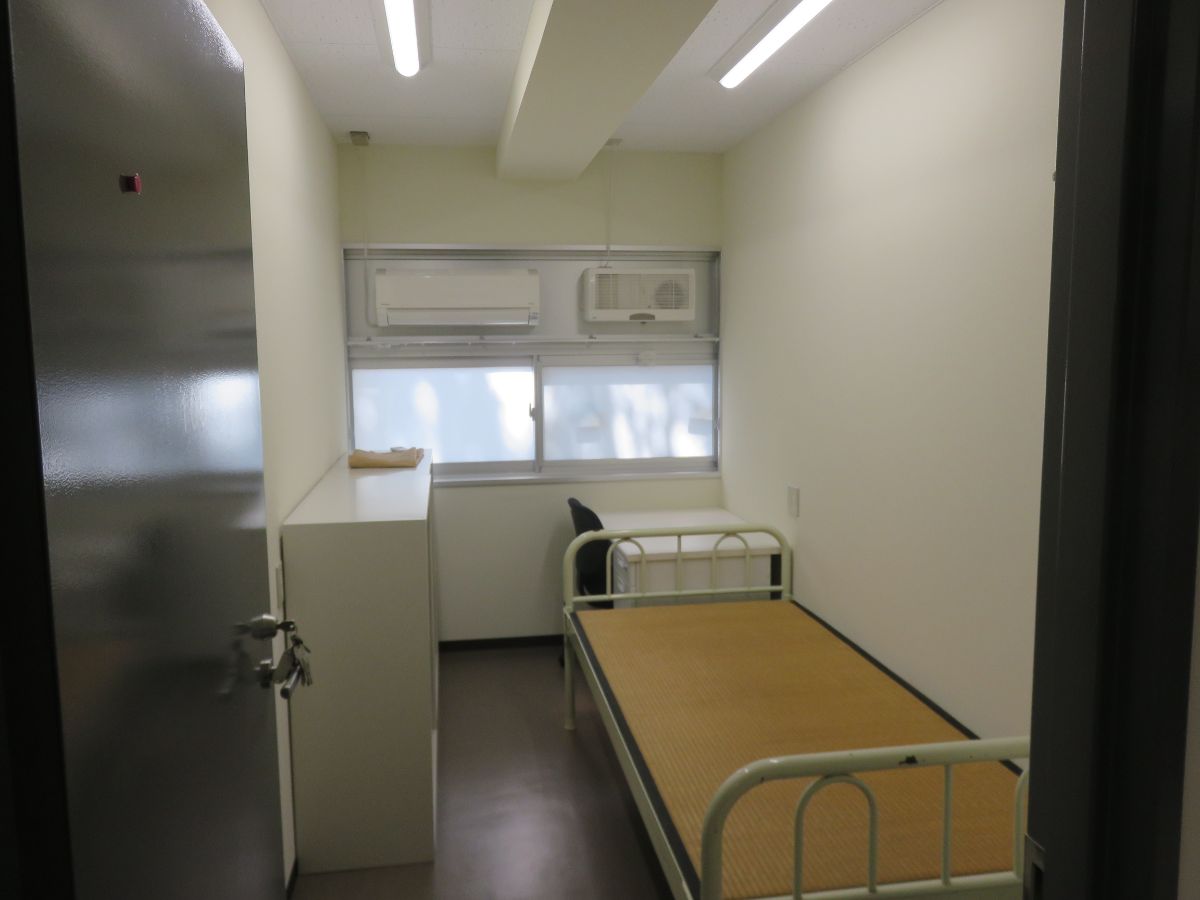 カーテンのサイズは窓枠の幅が2種類あり、幅183cm、高さ70cm(各階2,5,8,11室)と幅153cm、高さ70cm(その他の寮室)です。