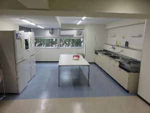 現在、留学生はG寮(国際寮)に移動しましたが、留学生との混在寮として改修したため、談話室はオープンスペースで、留学生の自炊のためキッチンスペースは他の寮棟より広くなっています。