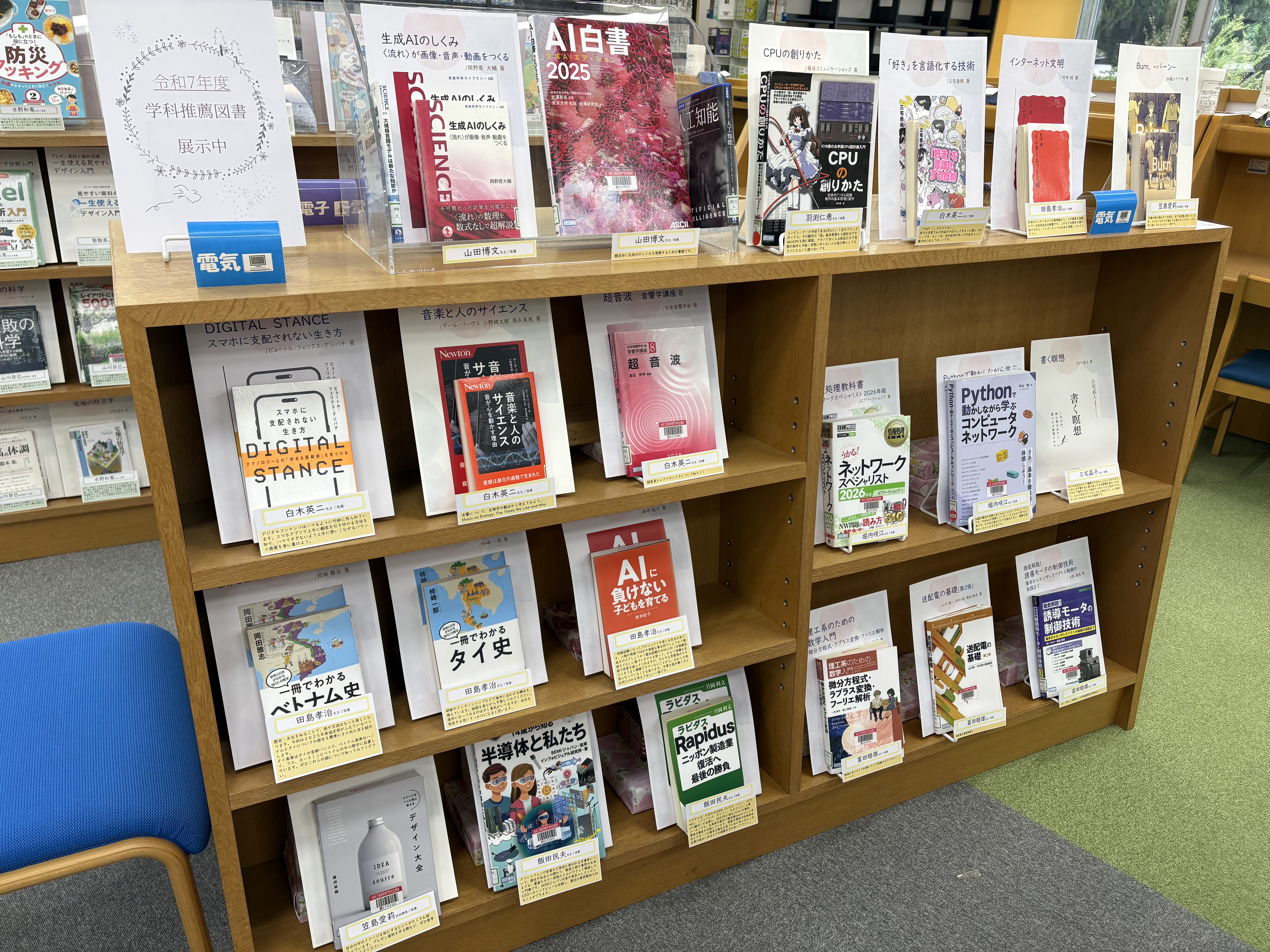 先生方にお薦めの本を推薦していただく、学科推薦図書コーナーを令和7年度版に更新しました。
